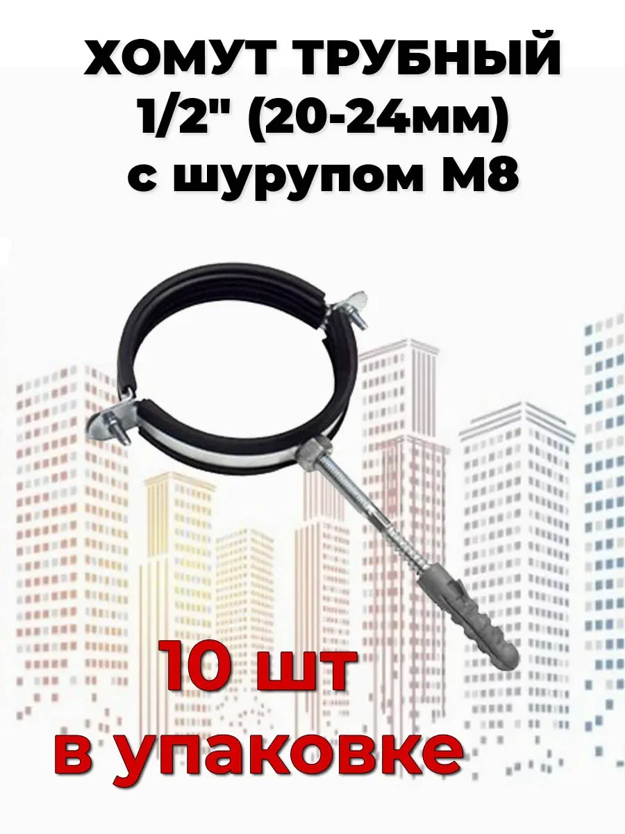 Хомут трубный с шурупом 1/2 (20-24мм) -10шт