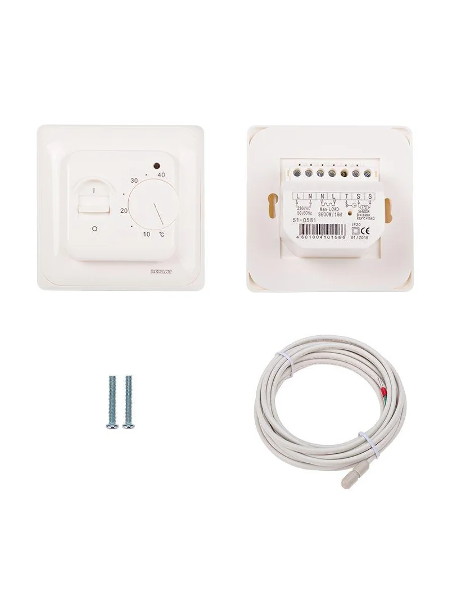 Термостат механический R70XT (OTN-1991; RTC 70.26; MST-1; MT-26; MTT-2; M5.713) 16А 3.6кВт для теплых полов датчик пола бел. Rexant 51-0531 | KeepBuilding