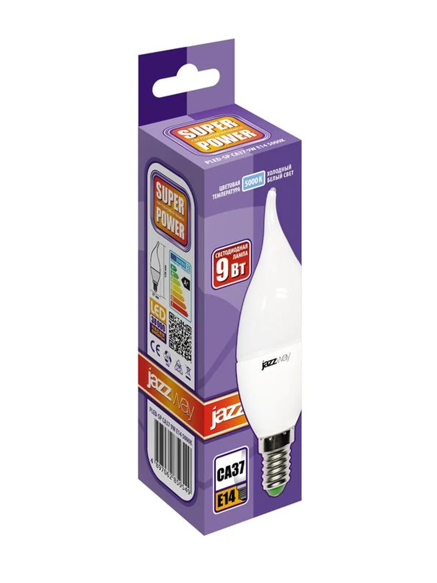 Лампа светодиодная PLED-SP 9Вт CA37 свеча на ветру 5000К холод. бел. E14 820лм 175-265В JazzWay 2859549A | KeepBuilding