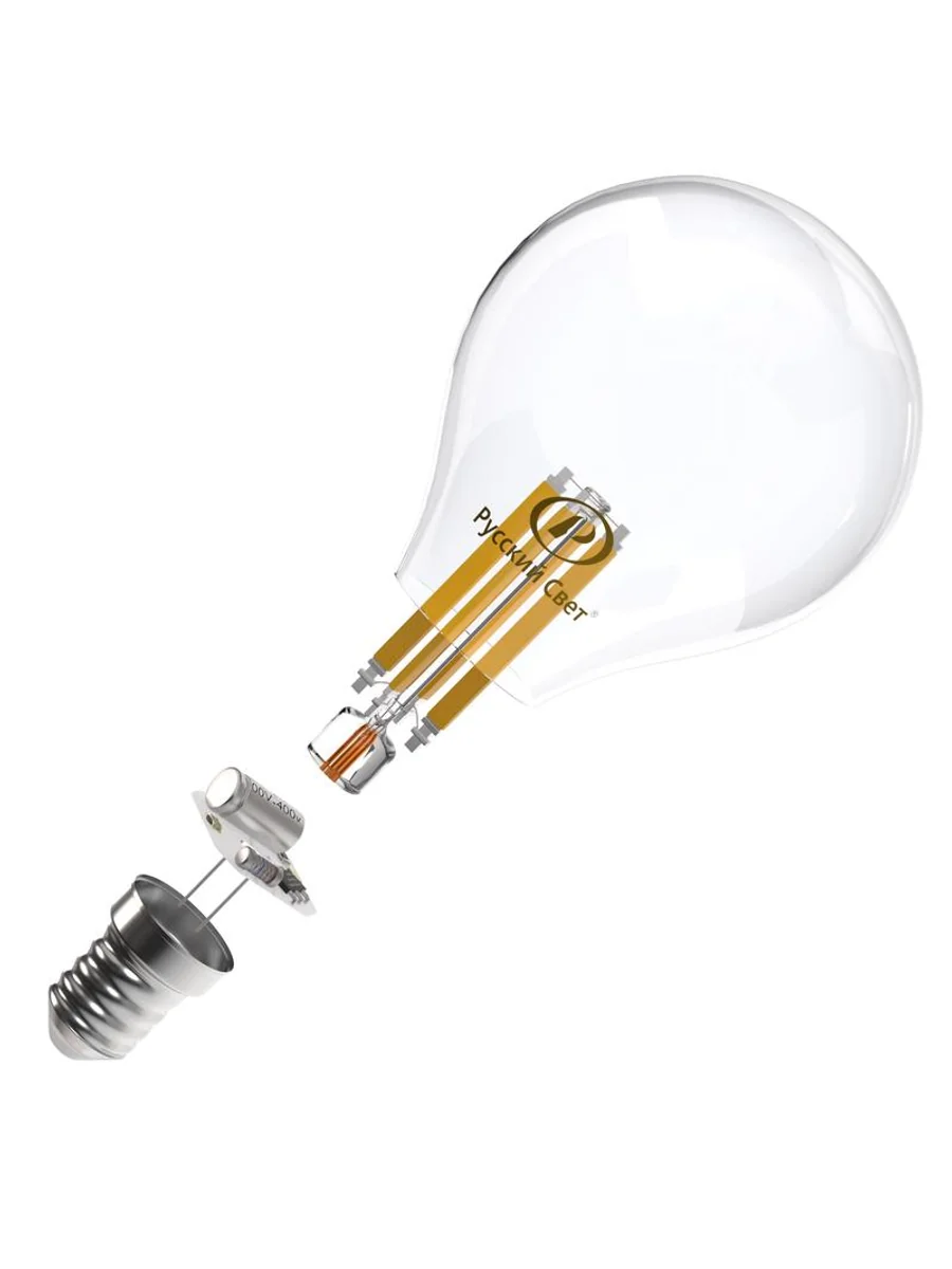 Лампа светодиодная филаментная RS F P45 E14 7W 220-240V 2700К 7Вт 810лм Ra 90 шар Русский Свет 15011245089 | KeepBuilding