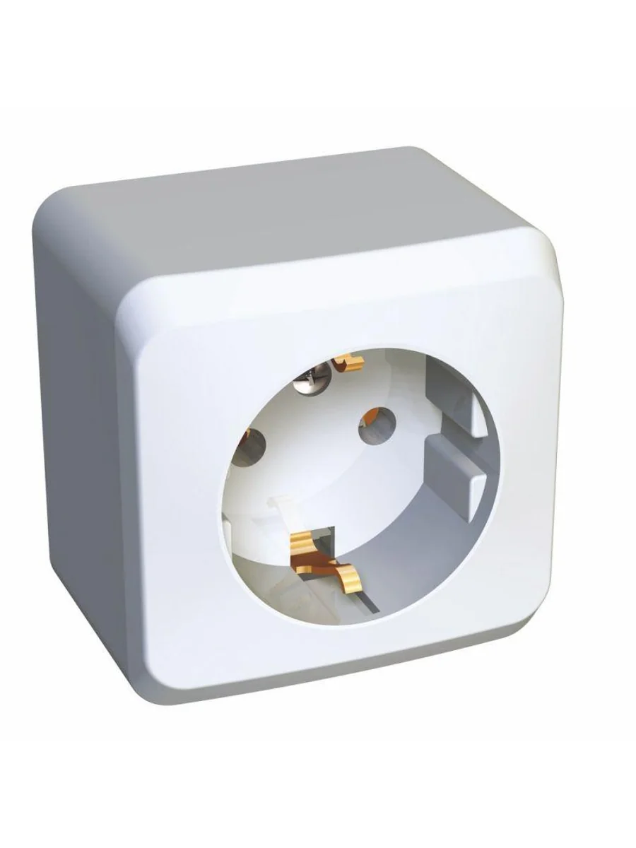 Розетка Systeme Electric (ранее Schneider Electric) ЭТЮД (белый, открытой установки) одноместная с заземлением, без шторок предназначена для применения в сетях до 250В, на ток до 16А. Заземление обеспечивает безопасность при косвенном прикосновении. Она проста в установке и удобна в применении. Сделано в России.
