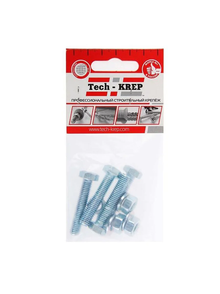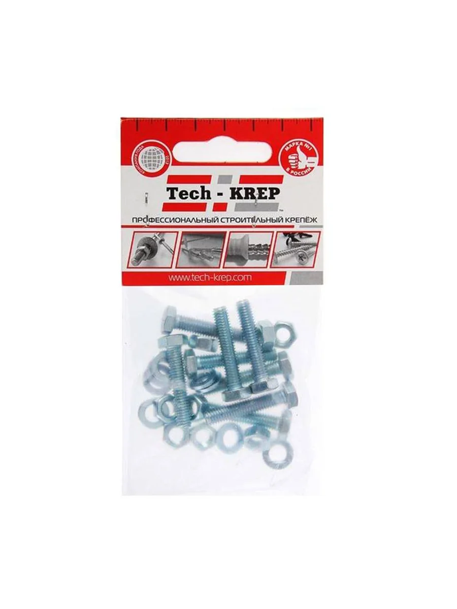 Болт с шестигранной головкой М8х30 DIN 933 класс прочн. 8.8 с гайкой и шайбой оцинк. (пакет) (уп.4шт) Tech-Krep/Zitar 112722