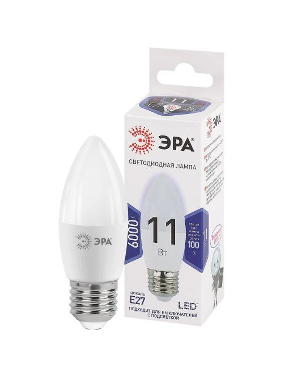 Лампа светодиодная B35-11w-860-E27 свеча 880лм ЭРА Б0032985