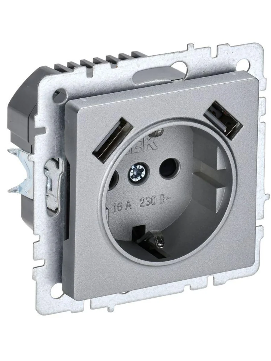 Розетка BRITE РЮш10-1-БрА 16А с USB A+A 2.1А с заземл. защ. шторки механизм алюм. IEK BR-R14-16-U21-D21-K47