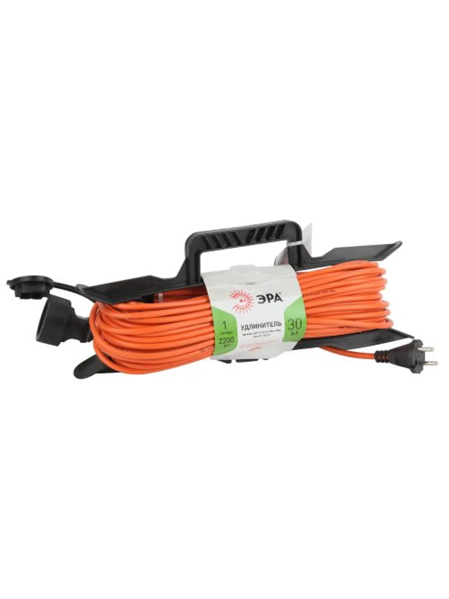 Удлинитель силовой на рамке UFx-1-2x1.0-30m без заземления, ПВС 2х1м2, 1 розетка, 30м, степень защиты IP20. Мощность 10А/2200Вт. Используется для работы на строительных площадках или дачных участках. Удобен при работе с приборами находящимися удаленно от стационарной розетки,. Например, газонокосилки, электрические, пилы, триммеры или электродрели. Провод в удлинителях Эра сделан из 100% меди, что делает его абсолютно пожаробезопасным. Рама-полипропилен.