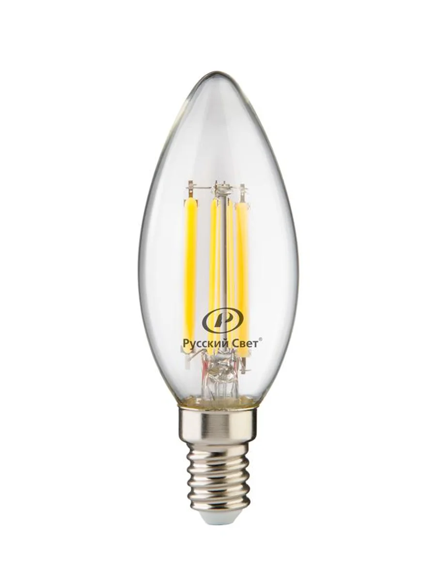 Лампа светодиодная филаментная RS F B35 E14 7W 220-240V 2700К 7Вт свеча 810лм Ra 90 Русский Свет 15011145088