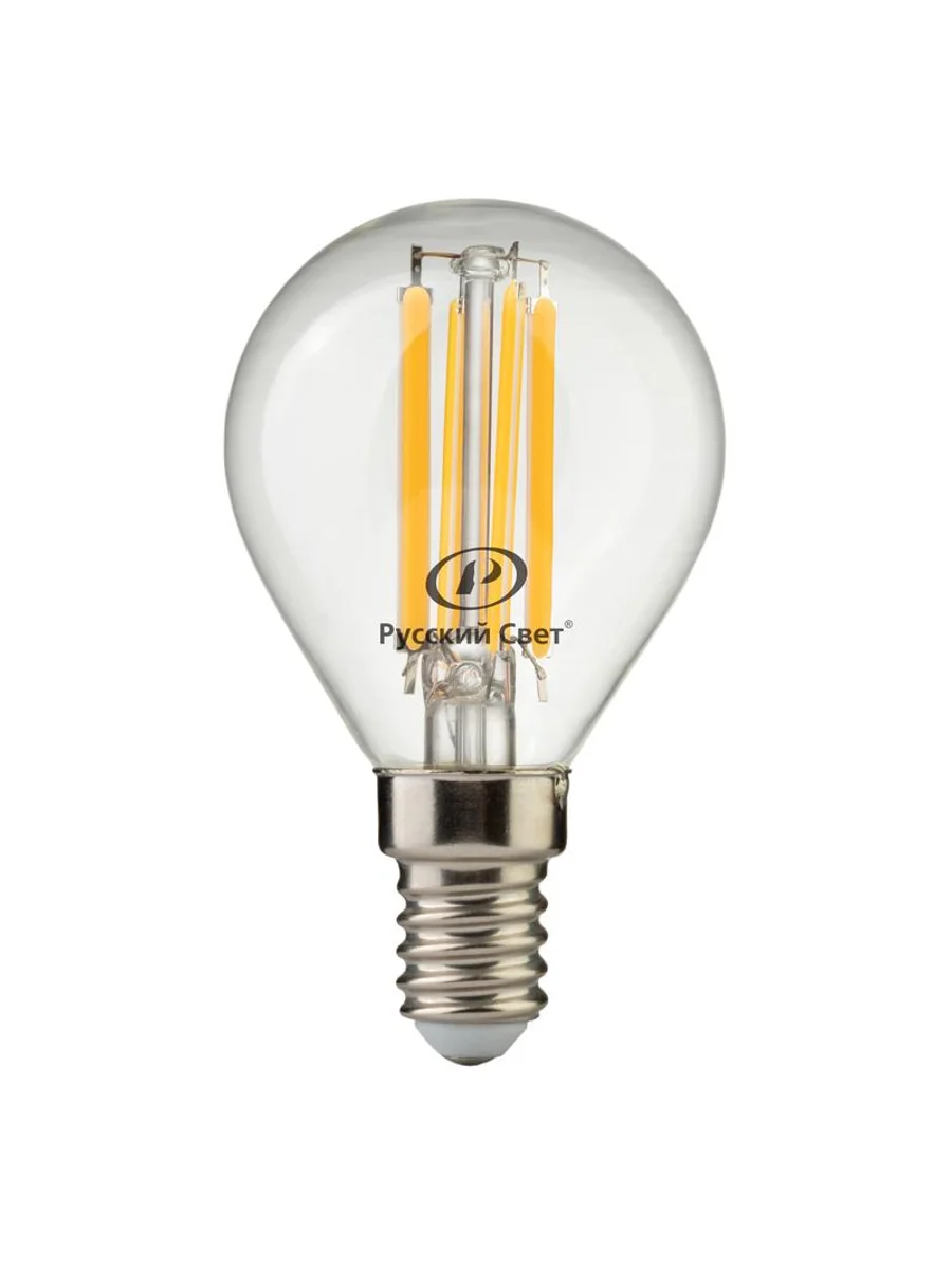 Лампа светодиодная филаментная RS F P45 E14 7W 220-240V 2700К 7Вт 810лм Ra 90 шар Русский Свет 15011245089