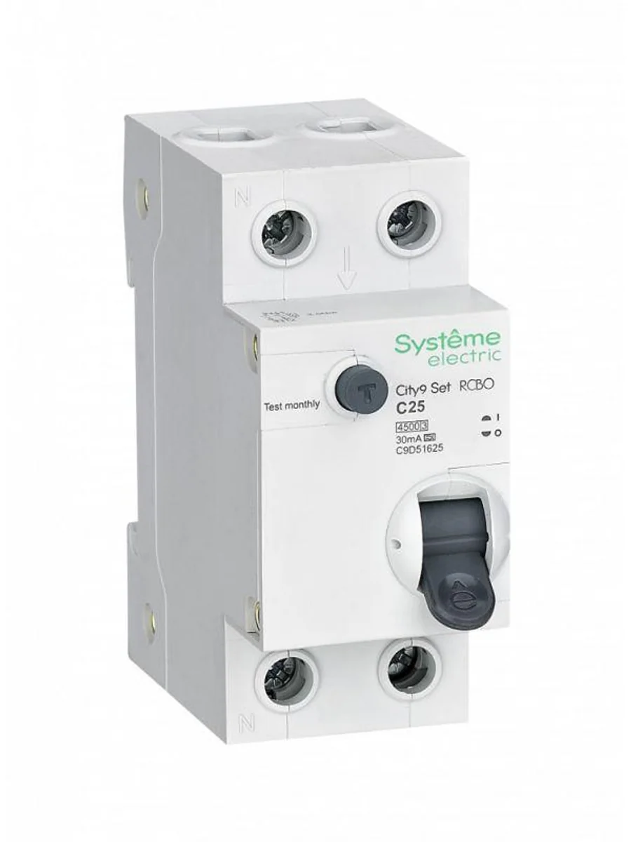 Выключатель автоматический дифференциального тока 2п (1P+N) C 25А 30мА тип A 4.5кА City9 Set 230В SE C9D55625