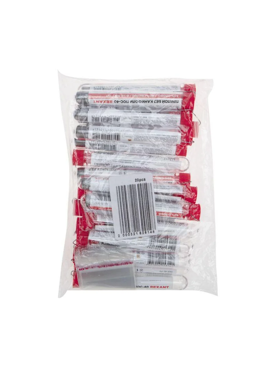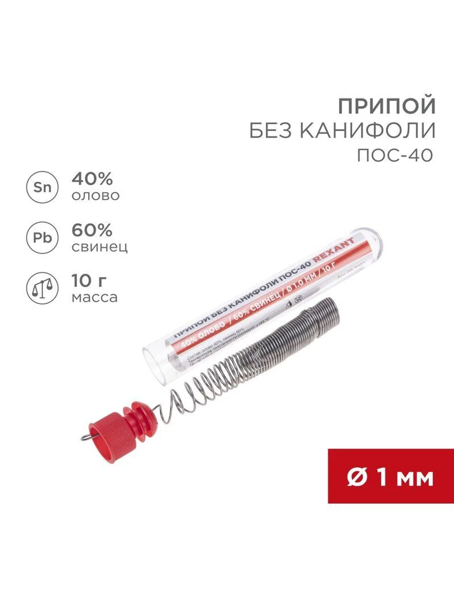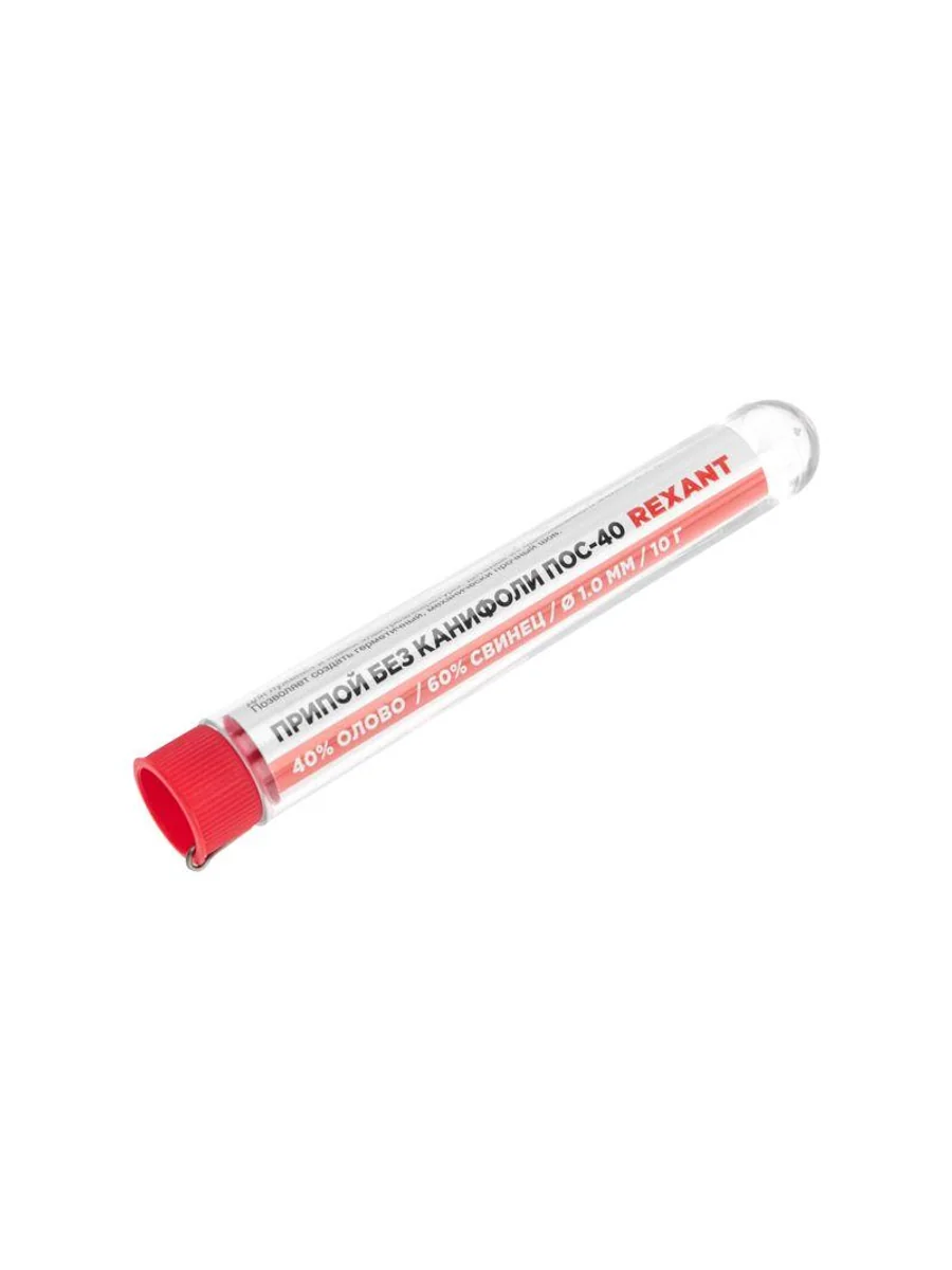 Припой без канифоли ПОС-40 10г d1.0мм (Sn40 Pb60) колба Rexant 09-3092
