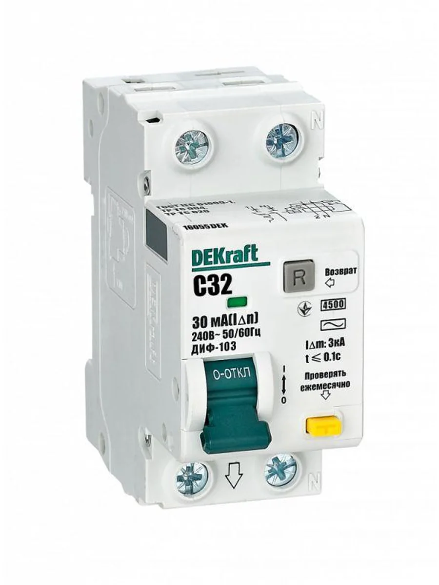 Выключатель автоматический дифференциального тока 2п (1P+N) C 32А 30мА тип AC 4.5кА ДИФ-103NEW DEKraft 16055DEK