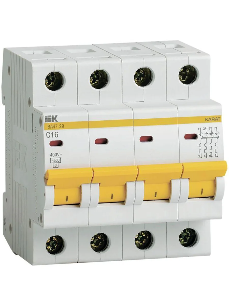 Выключатель автоматический модульный 4п C 16А 4.5кА ВА47-29 KARAT IEK MVA20-4-016-C