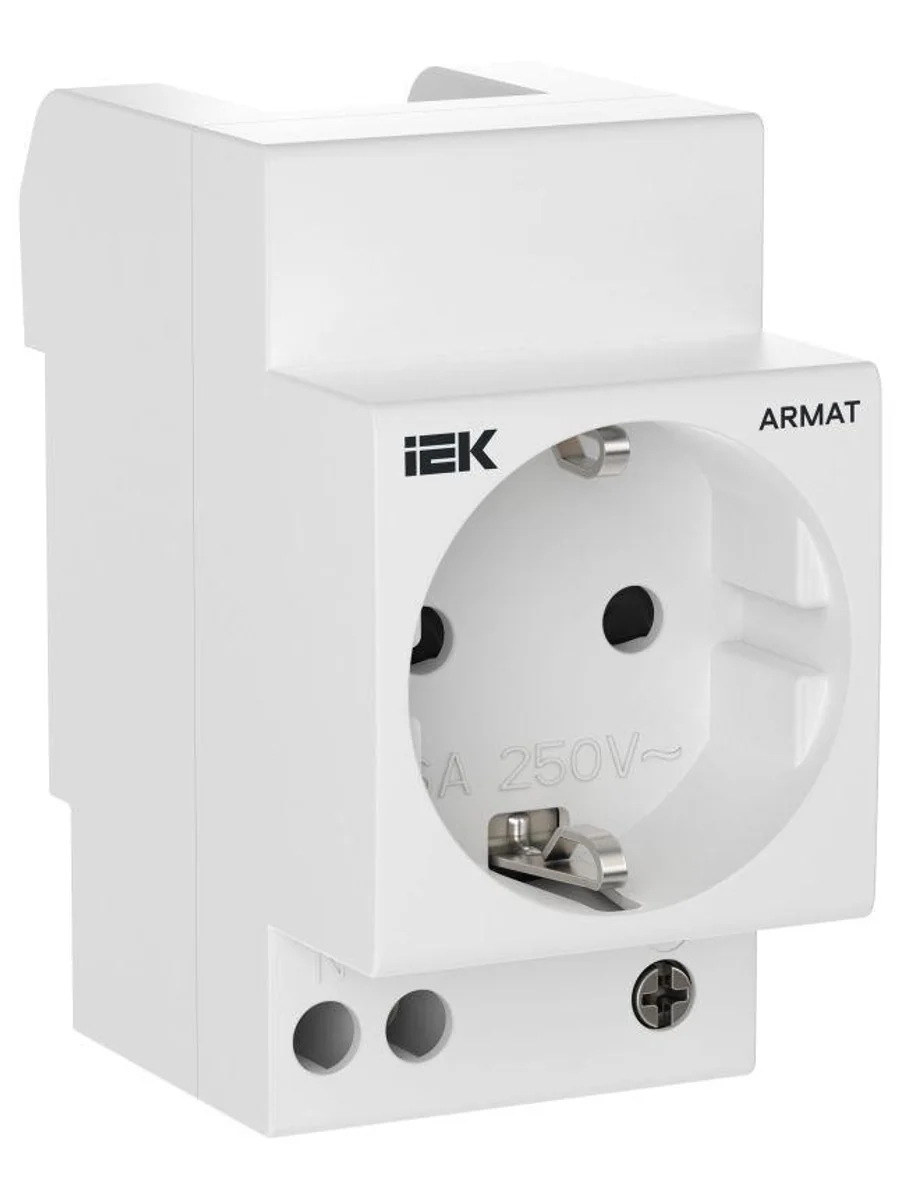 Розетка на DIN-рейку 45мм с заземл. защ. шторки 16А ARMAT IEK AR-SOD-G-GND-S-016