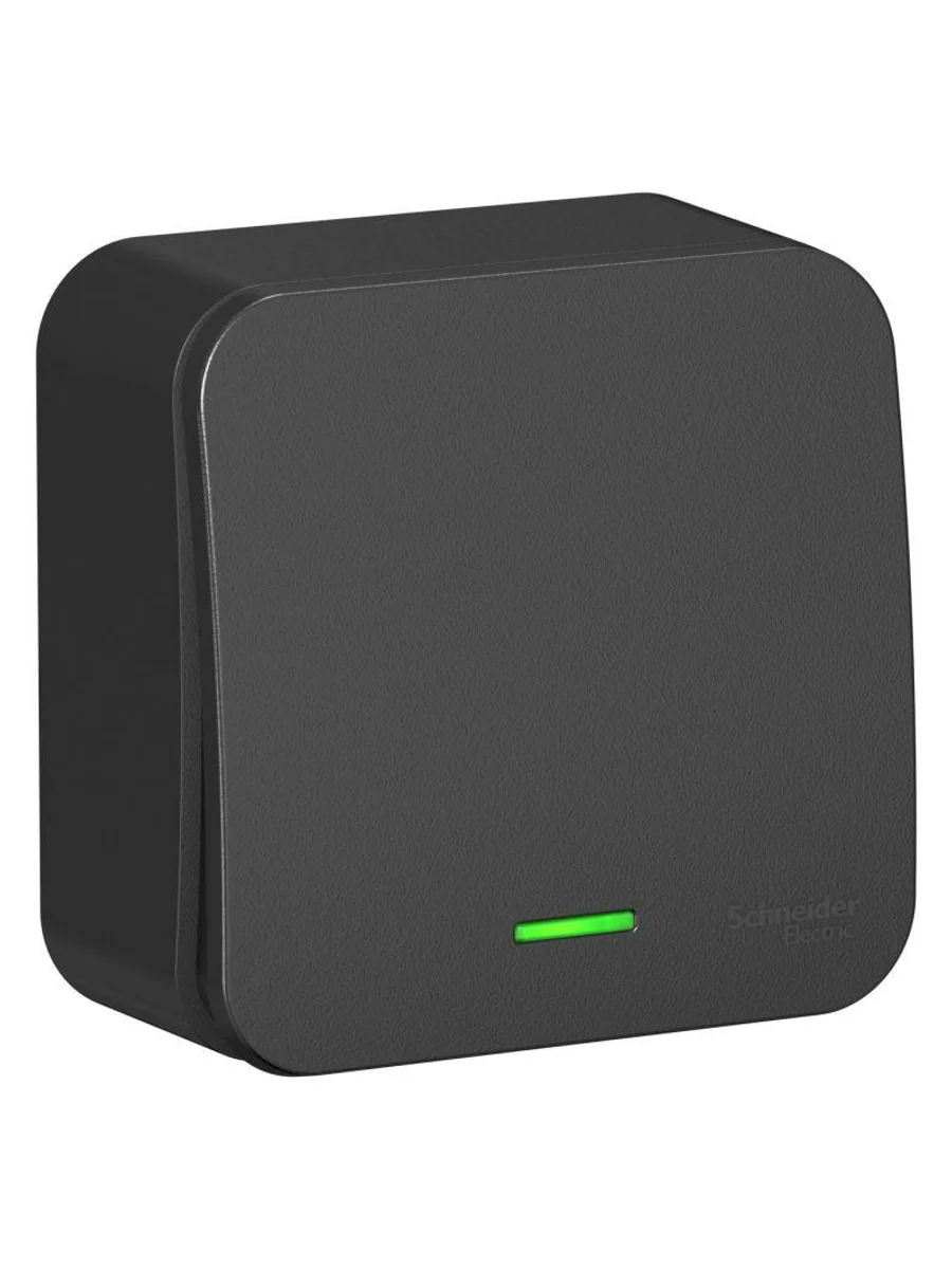 Переключатель Systeme Electric (ранее Schneider Electric) BLANCA (антрацит, открытой установки) с изолирующей пластиной одноклавишный предназначен для сетей до 250В, на ток до 10А. Подсветка делает его легко находимым в отсутствие освещения. Переключатель позволяет управлять одним источником света из двух точек. Корпус изделия выполнен из ABS-пластика.